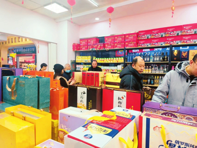 紅紅的燈籠,紅紅的“滿減”海報(bào),成套的年貨禮盒、年節(jié)飾品等組團(tuán)上新,年的“味道”瞬間撲面而來。1月25日,記者在各大商場(chǎng)、購(gòu)物中心發(fā)現(xiàn),不少商場(chǎng)入口處已經(jīng)掛上了“年貨”的特色標(biāo)識(shí),店鋪攤位前“買買買”模式火熱開啟。