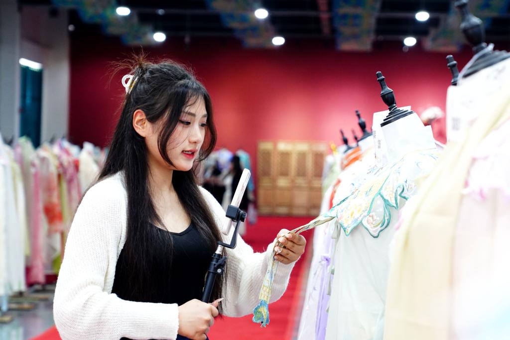 “85后”的黃曉燕曾在南方打拼十余年,如今成為曹縣穿越大唐漢服云倉(cāng)經(jīng)理。“雖然是在鄉(xiāng)鎮(zhèn)工作,但貼近市場(chǎng),節(jié)奏非???,每天顧客絡(luò)繹不絕?!彼谡箯d里邊走邊介紹,公司自主設(shè)計(jì)的漢服涵蓋唐、宋、明、清等品類(lèi),并根據(jù)人們?nèi)粘Vb特點(diǎn)加以改良。在這里,不僅能夠私人訂制服裝,還有AI直播改善線(xiàn)上消費(fèi)體驗(yàn)。