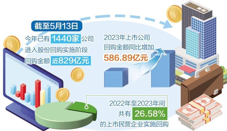 A股上市公司股份回購(gòu)熱持續(xù)升溫。Wind數(shù)據(jù)顯示,截至5月13日,今年已有1440家公司進(jìn)入股份回購(gòu)實(shí)施階段,合計(jì)回購(gòu)金額近829億元,遠(yuǎn)超去年同期的247億元。中國(guó)上市公司協(xié)會(huì)數(shù)據(jù)顯示,2023年上市公司回購(gòu)金額同比增加586.89億元,增長(zhǎng)108.82%。