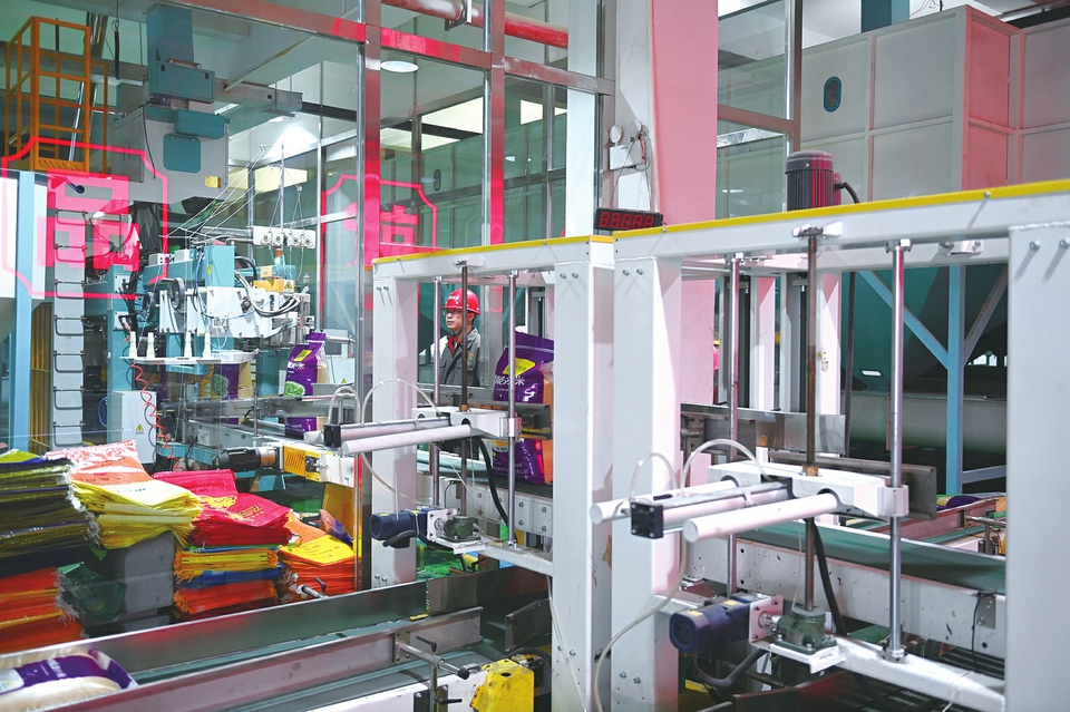 9月5日,五寨縣雜糧產(chǎn)業(yè)園內(nèi),工作人員正用全自動(dòng)生產(chǎn)線裝運(yùn)雜糧。該產(chǎn)業(yè)園是集農(nóng)產(chǎn)品生產(chǎn)、加工、倉(cāng)儲(chǔ)、物流、市場(chǎng)營(yíng)銷、品牌建設(shè)于一體的農(nóng)產(chǎn)品精深加工產(chǎn)業(yè)園,實(shí)現(xiàn)年銷售收入14.6億元。