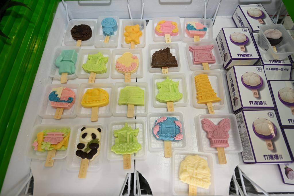 9月26日,參展商在博覽會(huì)現(xiàn)場(chǎng)展示兩款高校主題文創(chuàng)冰淇淋。新華社記者 孫凡越 攝 “除了減少糖分和卡路里外,一些冰淇淋品牌還開始添加具有健康益處的成分,如益生菌、膳食纖維等。這些成分不僅提升了冰淇淋的營(yíng)養(yǎng)價(jià)值,還賦予了產(chǎn)品更多的健康賣點(diǎn)?!睆埿『胝f。 光明乳業(yè)是中國領(lǐng)先的乳制品生產(chǎn)商之一,近期上海益民食品一廠有限公司推出了輕乳系列產(chǎn)品。 “這些產(chǎn)品減少了50%的蔗糖,有些還添加了膳食纖維,小杯設(shè)計(jì)也便于消費(fèi)者控制熱量?!痹诠饷魅闃I(yè)展臺(tái)上的張敏懿介紹道。 中國的德氏集團(tuán)有多款產(chǎn)品出口至美國、加拿大、新西蘭等國家和地區(qū)?!拔覀?cè)诋a(chǎn)品的原料添加和外觀設(shè)計(jì)方面,始終秉持著天然與健康的原則。在走向海外市場(chǎng)時(shí),我們不斷和海外合作商溝通交流,一起探索冰淇淋產(chǎn)品創(chuàng)新和健康升級(jí)新的可能性?!痹摷瘓F(tuán)營(yíng)銷總監(jiān)孟杰說。