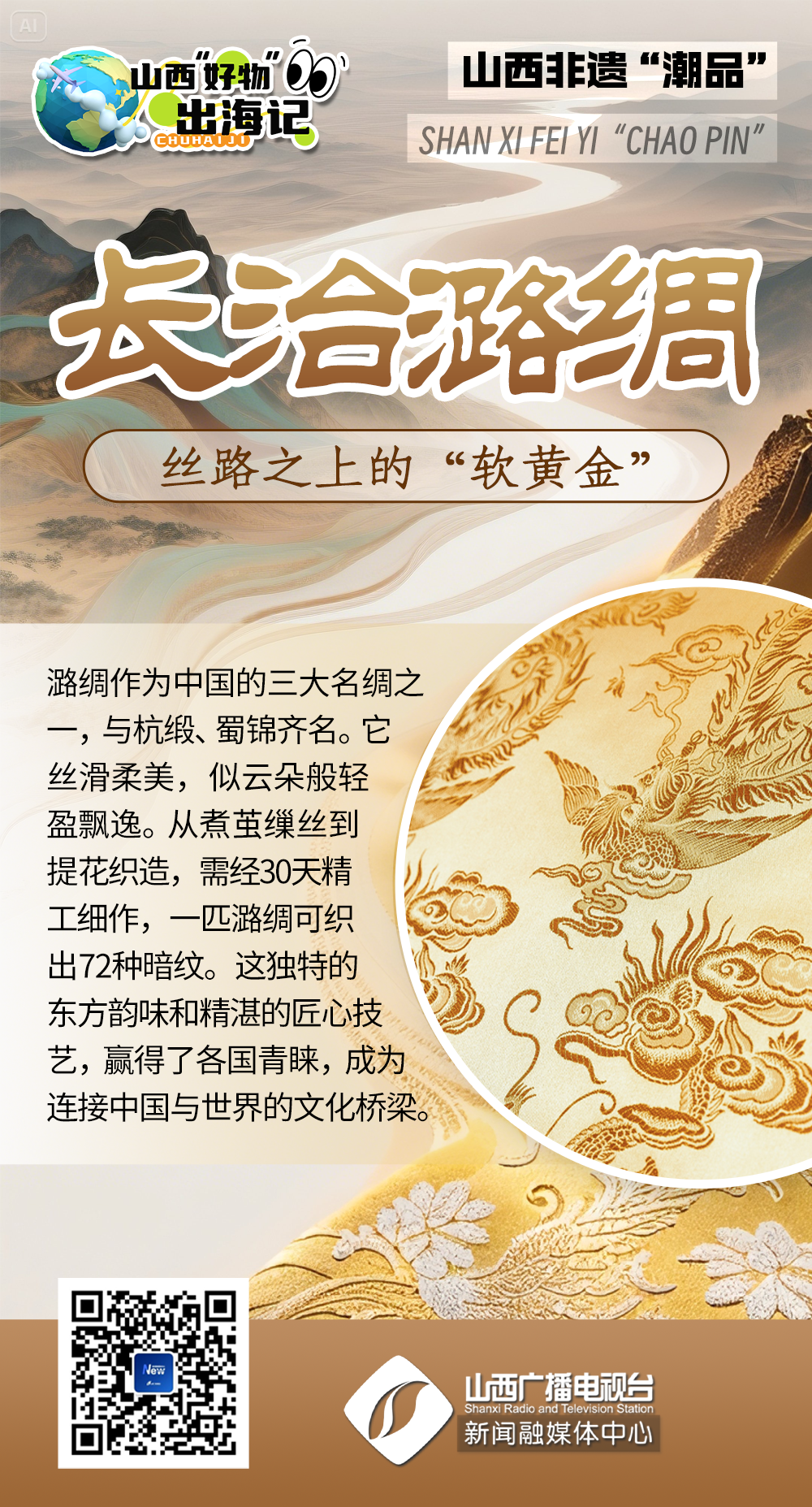 《山西“好物”出海記》特別策劃持續(xù)聚焦三晉“好物”出海征程!本期帶你直擊《山西非遺“潮品”成海外市場(chǎng)“香餑餑”》,看三晉大地的非遺瑰寶搭乘時(shí)代東風(fēng),穿越山海,驚艷世界,在“一帶一路”的畫卷上書寫文明對(duì)話新篇章。