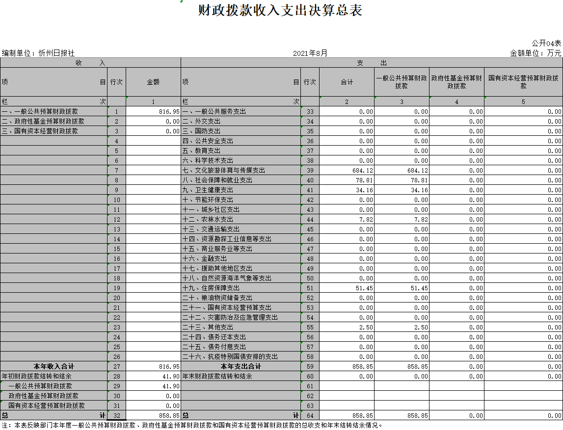 (五)政府性基金決算情況:忻州日報社不涉及政府性基金,故政府性基金決算支出為0.