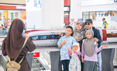 日前,在印度尼西亞雅加達(dá),乘客在雅萬高鐵哈利姆站候車大廳與雅萬高鐵高速動(dòng)車組模型合影。新華社記者 徐 欽攝