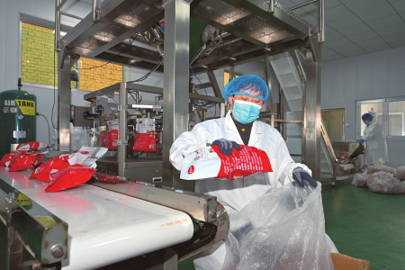 11月12日,襄遇欣安農(nóng)業(yè)發(fā)展有限公司包裝車間內(nèi),工人熟練地將凍干山楂成品送入稱重包裝機(jī)。近年來(lái),定襄縣辛安村大力發(fā)展村辦企業(yè),為當(dāng)?shù)禺a(chǎn)業(yè)發(fā)展、鄉(xiāng)村振興注入活力。