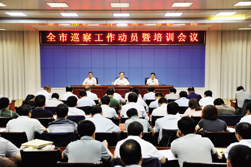 圖為全市巡察工作動員暨培訓會議會場。本報記者 劉紀森 攝 本報訊(記者康素芳 任逢春)5月26日下午,我市召開會議,深入貫徹中央巡視工作方針,全面落實省委巡察試點工作推進會精神,對全市開展市縣巡察工作進行動員和培訓。市委書記李俊明出席并作動員講話,市委常委、組織部長王云龍出席會議,市委常委、紀委書記王珍主持會議并部署巡察工作。會議邀請省巡視辦負責人進行現(xiàn)場培訓指導。市委巡察工作領(lǐng)導小組成員、市委巡察辦(組)全體成員及各縣(市、區(qū))巡察辦(組)負責人參加會議。 李俊明指出,要統(tǒng)一思想、提高認識,以高度的政治責任感推進市縣巡察工作。要充分認識開展市縣巡察對于延伸黨內(nèi)監(jiān)督觸角、落實全面從嚴治黨政治責任的重要意義;對于構(gòu)建巡視網(wǎng)絡格局、推進黨內(nèi)監(jiān)督全覆蓋的重要意義;對于深化基層黨風廉政建設(shè)和反腐敗斗爭、提升群眾獲得感的重要意義,切實抓好市縣巡察制度的貫徹落實。 李俊明強調(diào),要領(lǐng)會實質(zhì)、突出重點,扎實推進市縣巡察工作。要強化政治巡察,切實增強“四個意識”,聯(lián)系“四個全面”,聚焦全面從嚴治黨,緊扣“六項紀律”,緊盯“三大問題”,緊抓“三個重點”。要聚焦突出問題,堅持問題導向,讓顯性問題見根見底,讓隱性問題浮出水面,真正做到找準問題、挖深問題、證實問題、整改問題。要突出工作重點,開展市縣巡察特別要與“兩學一做”學習教育結(jié)合起來,與脫貧攻堅結(jié)合起來,與換屆選舉結(jié)合起來,推動全面從嚴治黨向基層組織延伸、向基層黨員領(lǐng)導干部延伸,發(fā)現(xiàn)突出問題,推進整改落實。要積極探索實踐,各巡察組要結(jié)合實際,大膽探索,有針對性地開展巡察工作。要注重成果運用,通過巡察問題的反饋、整改、督辦、公開、處置,真正把巡察成果運用到被巡察單位落實“兩個責任”上。 |