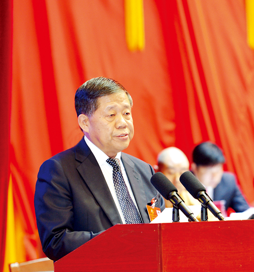 秦新年代表市三屆人大常委會作工作報告。宮愛文 攝