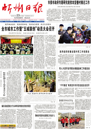 4月22日,忻州市召開(kāi)會(huì)議,動(dòng)員全市開(kāi)展“五城聯(lián)創(chuàng)”工作。提出了要以建設(shè)宜居忻州、造福人民群眾為目的、以“創(chuàng)衛(wèi)”為基礎(chǔ)、以“創(chuàng)園”為重點(diǎn)的創(chuàng)建國(guó)家衛(wèi)生城市、省級(jí)園林城市、國(guó)家環(huán)保模范城市、省級(jí)智慧城市、省級(jí)文明城市。同時(shí)宣布成立了“五城聯(lián)創(chuàng)”總指揮部,全面推進(jìn)了“五城聯(lián)創(chuàng)”工作。9月2日和12月9日,我市相繼召開(kāi)忻州城區(qū)創(chuàng)建國(guó)家衛(wèi)生城市大會(huì)和再動(dòng)員大會(huì),對(duì)創(chuàng)衛(wèi)工作再部署、任務(wù)再明確,進(jìn)一步動(dòng)員市、區(qū)各級(jí)各部門(mén)提高認(rèn)識(shí),明確責(zé)任,強(qiáng)化措施,狠抓落實(shí),確保城區(qū)順利創(chuàng)建國(guó)家衛(wèi)生城市。目前中心城區(qū)創(chuàng)建國(guó)家衛(wèi)生城市通過(guò)專(zhuān)家暗訪(fǎng),14個(gè)縣(市、區(qū))實(shí)現(xiàn)創(chuàng)衛(wèi)全覆蓋,全省唯一。中心城區(qū)和原平、五臺(tái)、寧武、岢嵐創(chuàng)建省級(jí)園林城市通過(guò)省考核驗(yàn)收,數(shù)量全省第一。加強(qiáng)大氣污染防治,全年二級(jí)以上天氣同比增加9天,是全省完成年度目標(biāo)任務(wù)的3個(gè)市之一。(2016年4月23日《忻州日?qǐng)?bào)》)