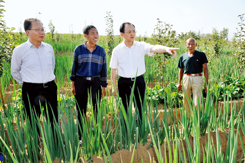高城鄉(xiāng)高城村多年種植商品辣椒,輻射帶動全區(qū)商品椒種植達10萬余畝。當前正是辣椒收儲加工的高峰期,李俊明實地察看辣椒產(chǎn)業(yè)園區(qū)內(nèi)的收儲加工情況,了解育苗大棚經(jīng)營收入,詢問送售辣椒農(nóng)民的種植收益,詳細了解帶動貧困群眾增收情況。李俊明指出,要持續(xù)深入打造辣椒生產(chǎn)全產(chǎn)業(yè)鏈條,通過規(guī)?;⑵放苹?、標準化以及線上線下同步發(fā)展,建立產(chǎn)業(yè)發(fā)展與貧困群眾的利益聯(lián)結(jié)機制,積極吸引周邊鄉(xiāng)村貧困群眾參與勞務(wù),帶動貧困群眾脫貧增收。董村鎮(zhèn)在傳統(tǒng)種植項目基礎(chǔ)上,由各村黨支部書記帶頭種植無公害紅薯、菌肥茄子、高油花生、大蔥、大蒜、板藍根等示范田,引導農(nóng)民調(diào)整種植結(jié)構(gòu)。李俊明實地察看了連片種植的百余畝高油花生種植田,詳細詢問實際產(chǎn)出比。他說,農(nóng)業(yè)供給側(cè)結(jié)構(gòu)性改革既要發(fā)揮好市場的調(diào)節(jié)作用,也要發(fā)揮政府的引導作用。要學習忻府區(qū)支部書記示范田的有益創(chuàng)新,通過支部書記、村主任等村干部帶頭,讓農(nóng)民在看得見的收益引導下自覺調(diào)整種植結(jié)構(gòu),把“三基”建設(shè)的成果最終體現(xiàn)到帶動農(nóng)民脫貧增收上。