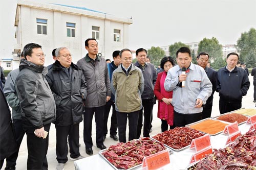 市長鄭連生帶隊(duì)觀摩五寨縣辣椒深加工項(xiàng)目。(本報(bào)記者 馮曉磊 攝)