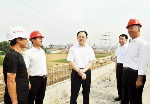 圖為省人大常委會(huì)副主任、市委書(shū)記李俊明在雄忻高鐵引入大西客專(zhuān)道岔施工現(xiàn)場(chǎng)調(diào)研。(本報(bào)記者 劉紀(jì)森 攝)