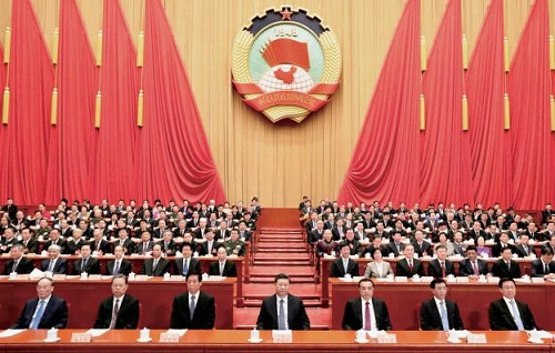 3月13日,中國人民政治協(xié)商會議第十三屆全國委員會第二次會議在北京閉幕。這是習(xí)近平、李克強、栗戰(zhàn)書、王滬寧、趙樂際、韓正、王岐山等在主席臺就座。新華社記者 黃敬文 攝
