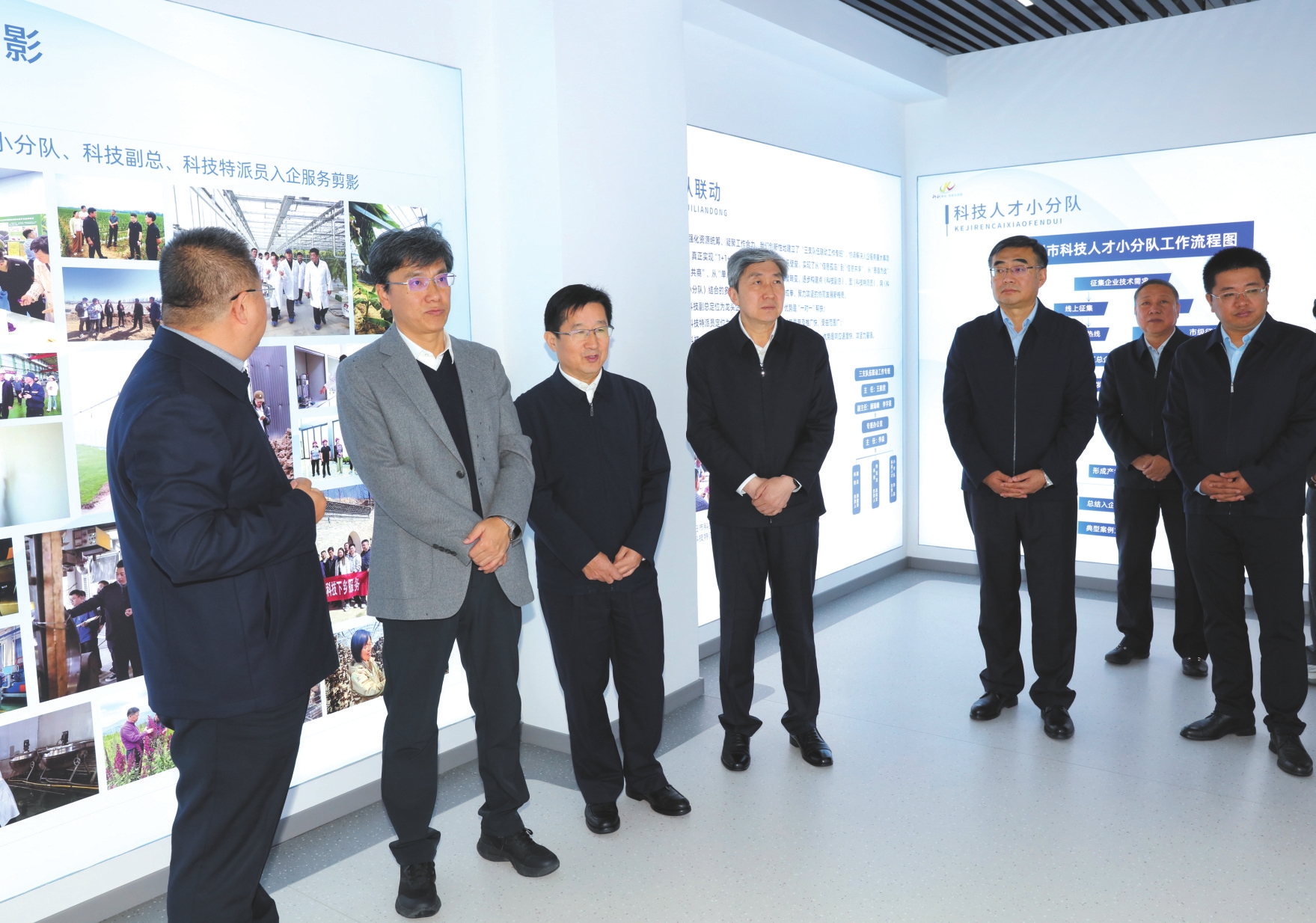 在忻州科創(chuàng)驛站,朱曉東、白培康等一行詳細(xì)了解科研創(chuàng)新成果和轉(zhuǎn)化應(yīng)用情況。忻州科創(chuàng)驛站依托入駐機構(gòu)人才資源,對標(biāo)忻州全市重點產(chǎn)業(yè),組建科技人才小分隊,與科技副總、科技特派員協(xié)同,打造點、面、網(wǎng)相結(jié)合的創(chuàng)新服務(wù)體系,推動科研成果找到轉(zhuǎn)化落地的應(yīng)用場景,人才得到施展才華的廣闊舞臺。大家對忻州科創(chuàng)驛站因地制宜打破高校成果轉(zhuǎn)化“落地難”與企業(yè)發(fā)展“技術(shù)荒”瓶頸,破解科研應(yīng)用“人才荒”的實際成效表示肯定。在忻州科創(chuàng)驛站內(nèi),由山西工程技術(shù)學(xué)院和太原科技大學(xué)組建的山工科技忻州創(chuàng)新研究院、重型機械裝備省部共建協(xié)同創(chuàng)新中心等機構(gòu)的科技成果,與忻州高端鍛造、廢棄資源綜合利用、煤機裝備等產(chǎn)業(yè)發(fā)展和生態(tài)環(huán)保事業(yè)緊密關(guān)聯(lián),大家對科研成果與地方產(chǎn)業(yè)發(fā)展實際的精準(zhǔn)嫁接表示欣慰。