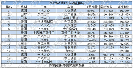 | 1月A級車:朗逸知恥而后勇 德、日系分庭抗禮 |