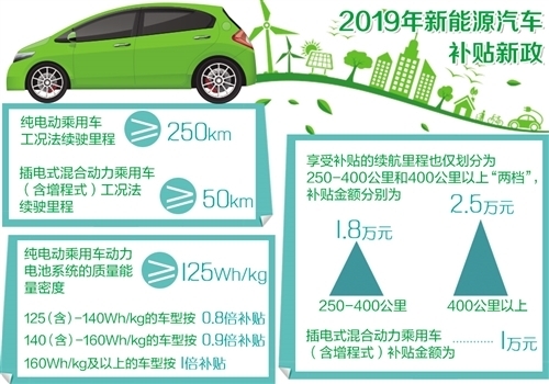 2019年新政提出:純電動(dòng)乘用車工況法續(xù)駛里程不低于250公里,插電式混合動(dòng)力乘用車(含增程式)工況法續(xù)駛里程不低于50公里,享受補(bǔ)貼的續(xù)航里程也僅劃分為250至400公里和400公里以上“兩檔”,補(bǔ)貼金額分別為1.8萬元和2.5萬元,插電式混合動(dòng)力乘用車(含增程式)補(bǔ)貼金額為1萬元。