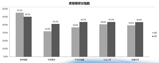 從庫存預(yù)警分指數(shù)來看,市場需求指數(shù)、平均日銷量指數(shù)、從業(yè)人員指數(shù)、經(jīng)營狀況指數(shù)環(huán)比上升,庫存指數(shù)環(huán)比下降。