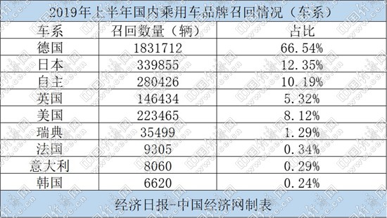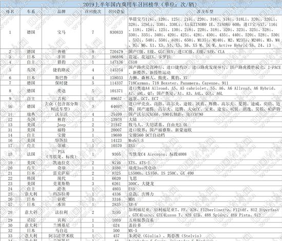 分車系來看,上半年,德系品牌成為召回“主力”,1-6月,德系品牌共召回汽車1831712輛,占召回總量的66.54%,其中寶馬、奔馳分別以830833輛和720479輛的召回數(shù)量,“遙遙領(lǐng)先”其他品牌;而高檔車、超級跑車品牌保時捷更是召回汽車114337輛,數(shù)量甚至遠超其2018年80108輛的銷量總和。