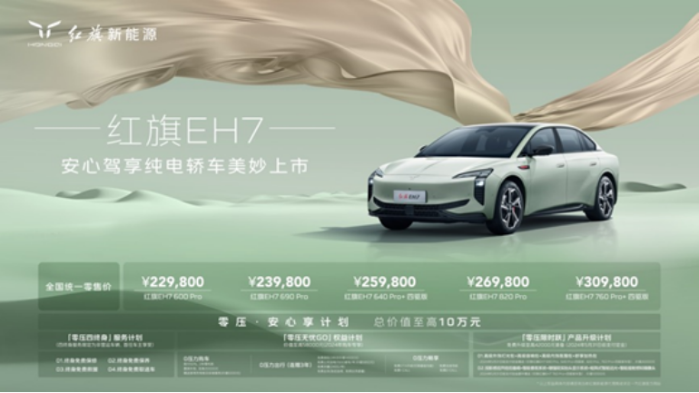 隨著環(huán)保意識的提升和新能源技術的飛速發(fā)展,新能源汽車成為全球汽車產業(yè)發(fā)展的新方向。紅旗新能源緊隨時代潮流,于3月20日在深圳舉辦“安心駕享·紅旗EH7上市發(fā)布會”,推出了其在新能源領域的里程碑產品——紅旗EH7,全國統(tǒng)一零售價為22.98萬-30.98萬元。這款車的推出,不僅增強了紅旗新能源的市場競爭力,也為汽車行業(yè)的綠色轉型和技術革新樹立了新典范。