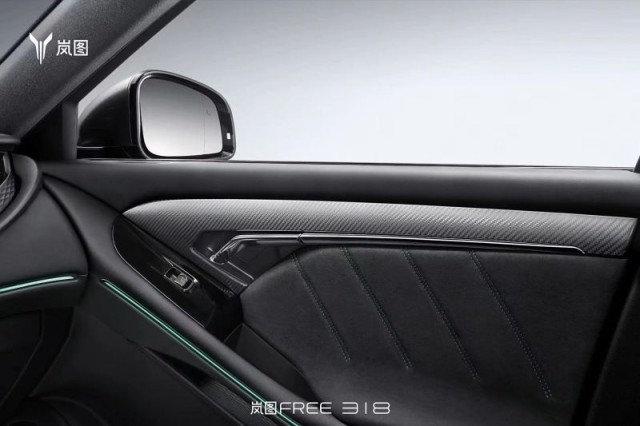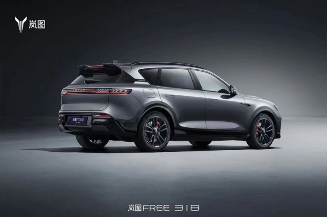 嵐圖FREE 318的車側與車尾也進一步“黑化”,運動化輪圈內(nèi)還采用了紅色制動卡鉗,此外,新車尾部激進的尾翼也為整體視覺效果增色不少,給人很強的視覺質(zhì)感。