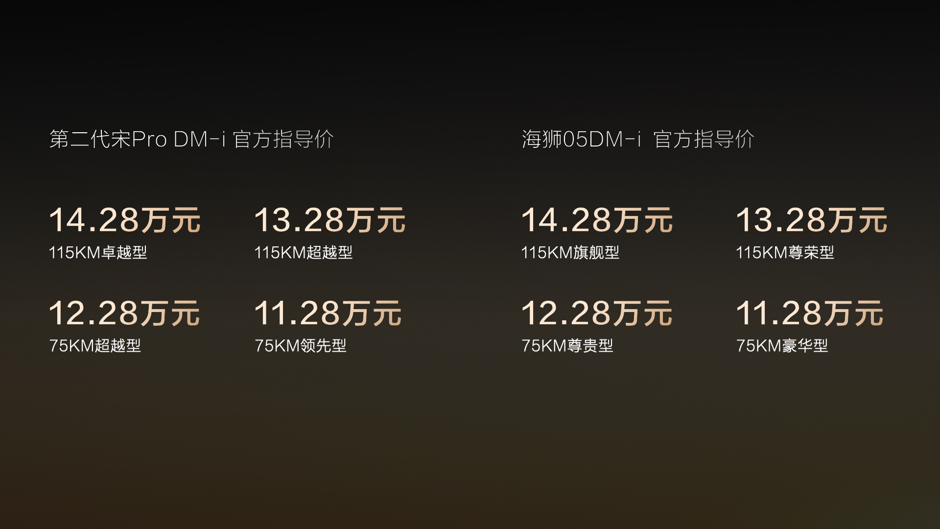 9月23日,搭載比亞迪第五代DM技術(shù)的海獅05DM-i及第二代宋Pro DM-i正式上市。比亞迪海洋網(wǎng)總經(jīng)理張卓、王朝網(wǎng)總經(jīng)理路天與德云社演員閻鶴祥、孟鶴堂同臺(tái)互動(dòng),講述國(guó)民SUV的四門功課。兩款新車各推出4個(gè)版本,官方指導(dǎo)價(jià)11.28-14.28萬(wàn)元,加速SUV市場(chǎng)新能源變革。超16項(xiàng)全系標(biāo)配,入門即高配,充分展現(xiàn)了比亞迪持續(xù)以科技創(chuàng)新推動(dòng)技術(shù)普惠,引領(lǐng)新能源汽車行業(yè)變革的決心。