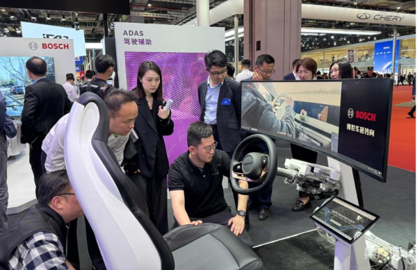 上海車展上博世展臺(tái)的駕駛輔助系統(tǒng)展示(央廣網(wǎng)記者董楠 攝)