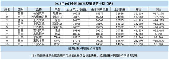 而今年前期表現(xiàn)突出的合資品牌SUV在年末則沒有了銷售壓力,因此也表現(xiàn)出了更加保守的走勢以為來年蓄力。10月,途觀失守亞軍位置跌落至第三;而日系則仍有三車入榜,其中從“機油門”困擾中逐步走出的東風(fēng)本田有兩車入榜;而昂科威跌出榜單后,美系則已無車入榜。