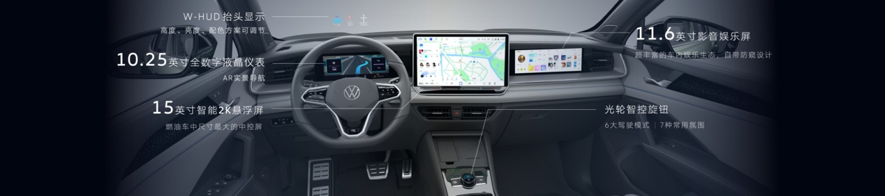 基于“好用”和“想用”的理念,全新探岳L 智能座艙以5+X多屏多模交互系統(tǒng)為核心。其中,“5”即5塊屏幕,包含了15英寸2K中控屏、11.6英寸副駕影音娛樂屏,搭配豐富的車內(nèi)娛樂生態(tài),靈動(dòng)又默契;另外,10.25英寸全數(shù)字液晶儀表,能實(shí)現(xiàn)AR實(shí)景導(dǎo)航,導(dǎo)航信息與實(shí)景路面融合,讓駕駛更加專注;抬頭顯示HUD,安全好用;可觸摸光輪智控旋鈕,調(diào)節(jié)音量和切換駕駛模式,更加便捷。