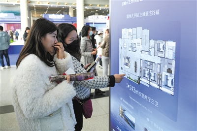 2月8日,購房者在2023齊魯(濟(jì)南)春季房地產(chǎn)展示交易會現(xiàn)場了解房屋信息。新華社記者 朱崢 攝