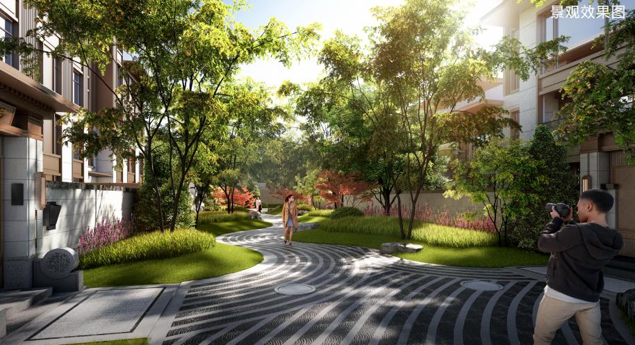 項目整體景觀設(shè)計以山林水源,禪意大宅為主線,將江南園林與皇家園林相結(jié)合,形成前府后院的園林形態(tài),景觀采用四級九景,四重栽植的造園手法,點綴了九個院落,四十個景點。園林鋪裝精致而具有設(shè)計感,在細節(jié)中加入特有的重視吉祥紋樣,更突出了新中式園林的設(shè)計風格。