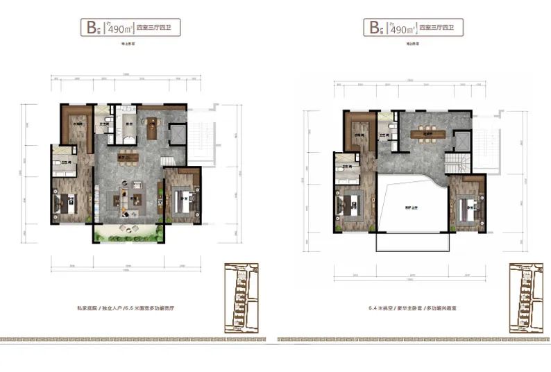 項目主打聯(lián)排疊墅戶型設(shè)計,疊墅是低密度住宅,樓距寬,樓棟密度小,保持有一定的私密性,每戶擁有私家獨立庭院,及私家花園露臺,庭院入戶,室內(nèi)層高3.2米,每戶設(shè)有私家電梯可以直達室內(nèi)任一層及空中露臺,地下室和私家車庫。客廳開間6.6米,層高挑空6.4米的設(shè)計(挑空部分不計算面積),另外挑空部分可以根據(jù)業(yè)主需求,自行設(shè)計,可以增加一個約40平米的起居室。