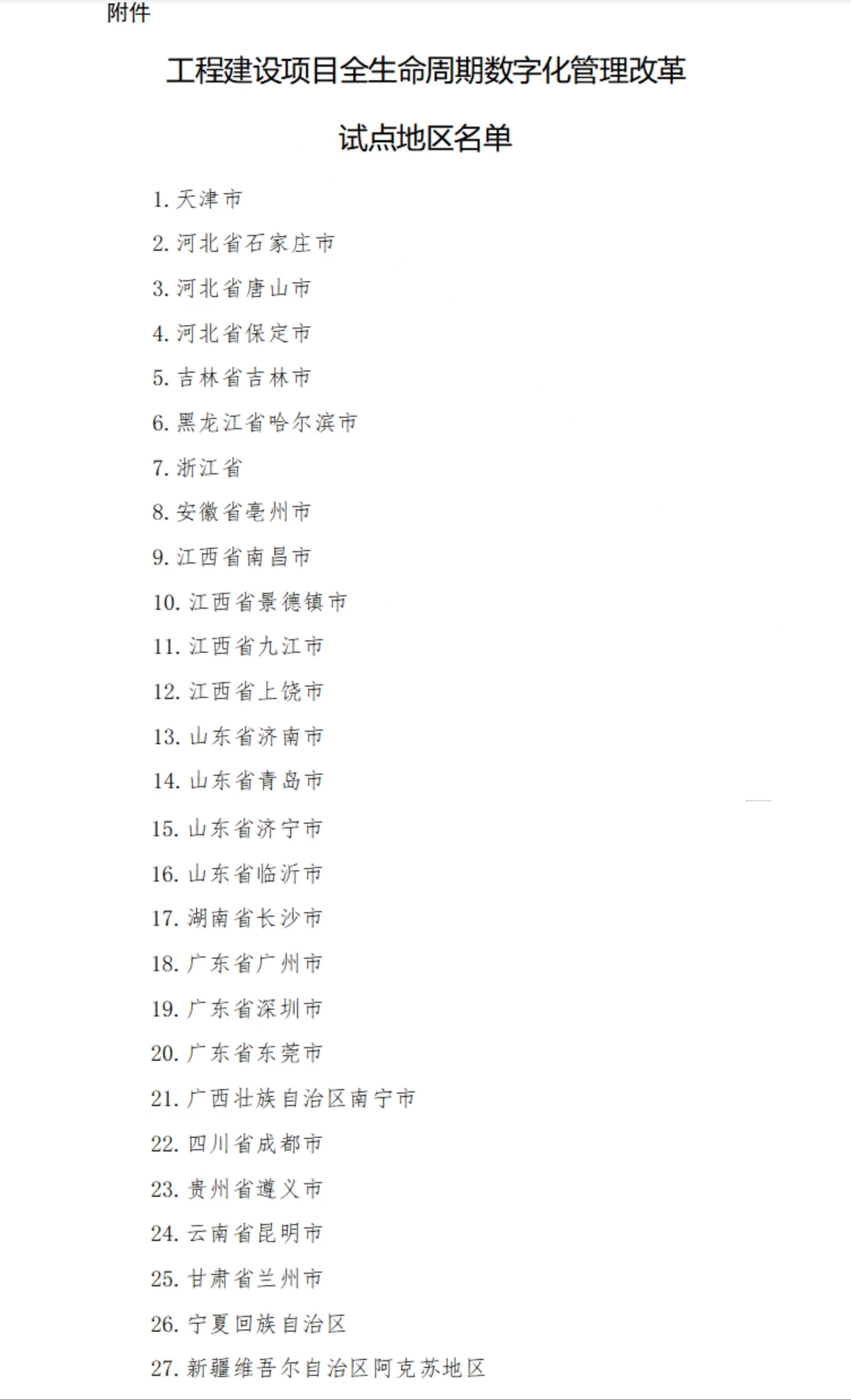 (工程建設(shè)項(xiàng)目全生命周期數(shù)字化管理改革試點(diǎn)名單,圖源:住房和城鄉(xiāng)建設(shè)部網(wǎng)站,央廣網(wǎng)發(fā))