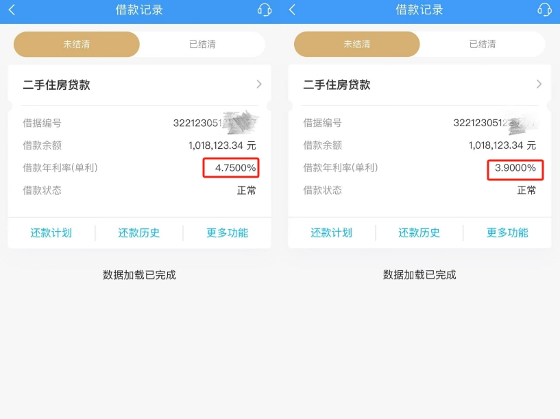 (北京購(gòu)房者董先生提供存量房貸利率調(diào)整前后對(duì)比) 10月25日一早,不少購(gòu)房者紛紛曬出房貸利率下調(diào)的好消息。對(duì)于在北京存量房貸利率為4.75%貸款100萬(wàn)25年的購(gòu)房者來(lái)說(shuō),本次調(diào)整后月供減少約500元。 記者了解到,大部分存量房貸將在25日完成批量調(diào)整,總體預(yù)計(jì)將在10月31日前全部完成。根據(jù)人民銀行此前透露,此次存量房貸利率下調(diào)將惠及5000萬(wàn)戶家庭、1.5億人口,平均每年減少家庭利息支出1500億元左右。 本次存量房貸利率下調(diào)是銀行批量調(diào)整,因此不需要借款人做任何操作,北京、上海、深圳由于有政策利率下限,二套及以上房貸利率只能調(diào)整到當(dāng)?shù)卣呃氏孪匏?,其他地區(qū)大部分存量房貸利率都將調(diào)整為貸款市場(chǎng)報(bào)價(jià)利率LPR-30BP。 值得注意的是,由于貸款重定價(jià)日的差異,調(diào)整后的存量房貸利率存在3.9%、3.65%、3.55%三種情況。不過(guò),自11月1日起,存量和新發(fā)放個(gè)人住房貸款均可由借貸雙方自主協(xié)商重定價(jià)周期,選擇按年、半年或季度重定價(jià)。調(diào)整后,購(gòu)房者的等待時(shí)長(zhǎng)將縮短。 (責(zé)任編輯:蔡文斌) |