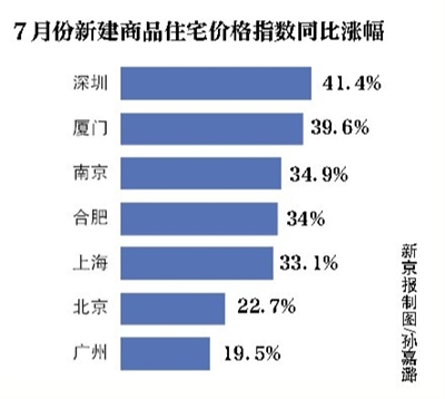 國(guó)家統(tǒng)計(jì)局?jǐn)?shù)據(jù)顯示:7月份廈門新建商品住宅價(jià)格指數(shù)較上月環(huán)比增長(zhǎng)4.6%,較去年同比漲幅達(dá)39.6%。
