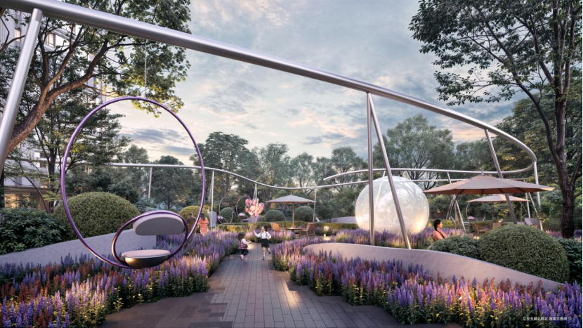 其景觀園林以“風(fēng)谷之境”為主題,打造一系列具有動感的主題場景。像三期南側(cè)將建設(shè)一個“風(fēng)速運動場”,周邊種植高大喬木,業(yè)主可以在綠蔭下享受運動帶來的舒適。英式花園“風(fēng)吟花園”則配備了秋千、卡座等,讓孩子們的歡樂和笑聲在綠植花徑中暈開。地勢高、低容積率,疊加較大樓間距,北熙區(qū)三期產(chǎn)品的布局在保障樓宇之間采光、通風(fēng)的同時,為業(yè)主提供出門可親享空中綠島的自然生活體驗感。