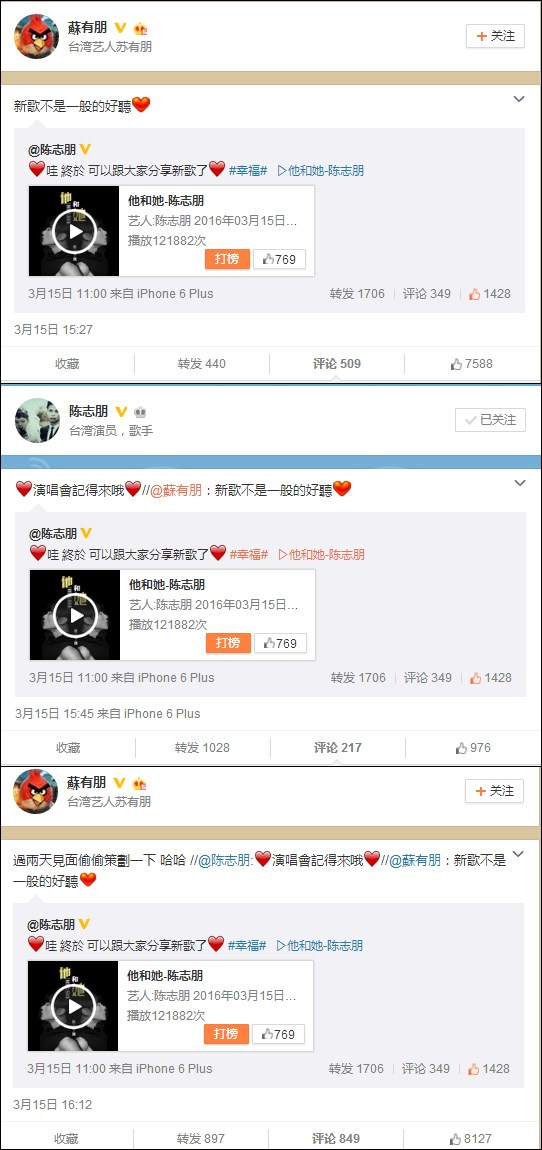 陳志朋蘇有朋微博甜蜜互動(dòng)