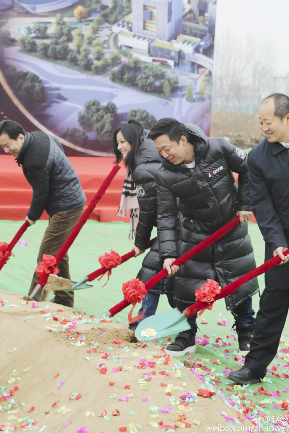 12月25日,北京電影學(xué)院懷柔新校區(qū)開(kāi)工儀式舉行。趙薇、黃渤作為資深校友現(xiàn)身奠基儀式,穿羽絨服鏟土。趙薇贊“地杰人靈之地!”