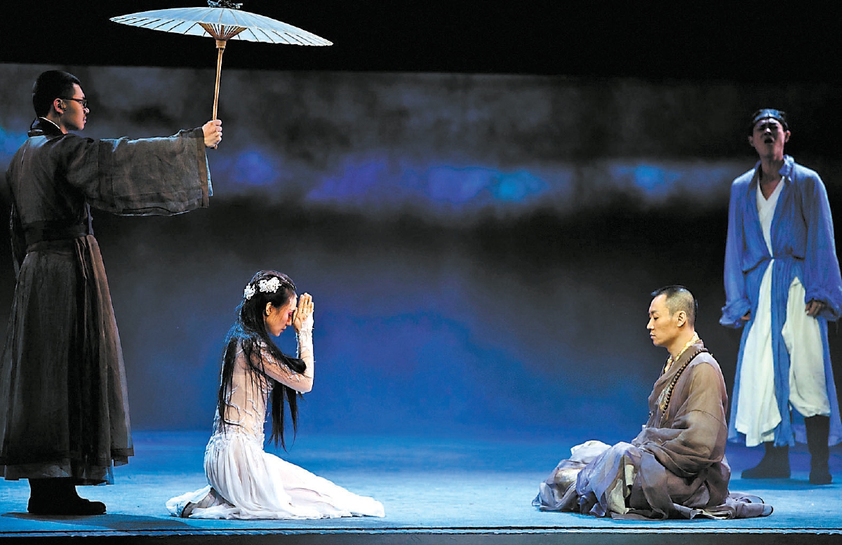 從古至今,各個(gè)時(shí)期的創(chuàng)作者根據(jù)當(dāng)時(shí)的社會(huì)環(huán)境、價(jià)值觀念、文化意識(shí)以及特定需要,在傳統(tǒng)民間傳說(shuō)的基礎(chǔ)上重構(gòu)各具特點(diǎn)的白蛇故事。近年來(lái),傳統(tǒng)文化題材成為文藝創(chuàng)作富礦,圍繞《白蛇傳》的改編也頗為豐富。除了前文中提到的多部舞劇作品,還有粵劇電影《白蛇傳·情》、動(dòng)畫(huà)電影《白蛇:緣起》《白蛇 2:青蛇劫起》等,均嘗試為這一古老故事賦予新的內(nèi)涵,但其中一些作品或無(wú)甚新意,或在觀念上開(kāi)起倒車(chē)。