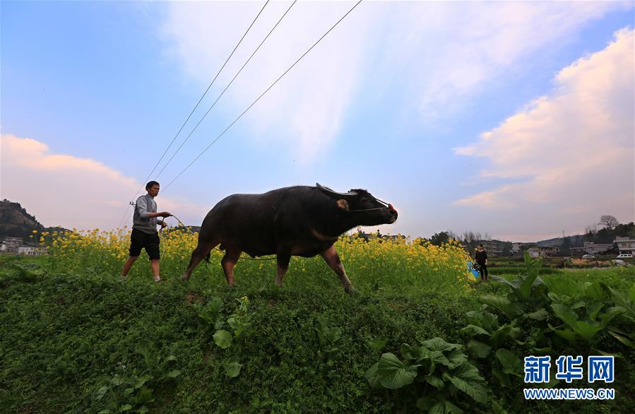 2月17日,貴州凱里,村民楊漢山趕著水牛去耕田。早春時節(jié),隨著氣溫回升,各地春意漸濃。 新華社發(fā)(吳吉斌 攝)