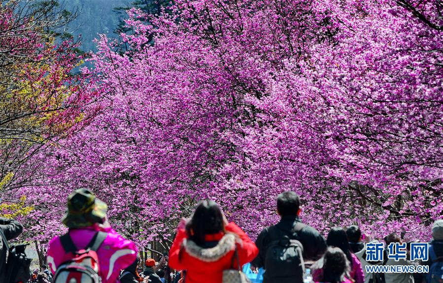 2月29日,游客在武陵農(nóng)場(chǎng)賞花。初春的臺(tái)灣,氣溫回升,位于海拔1700多米的臺(tái)中武陵農(nóng)場(chǎng),漫山遍野的櫻花競(jìng)相開(kāi)放,美不勝收,吸引了四面八方的游客前來(lái)觀賞。 新華社記者張國(guó)俊 攝
