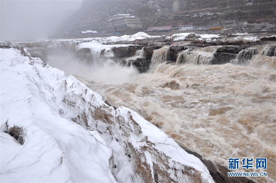3月9日,一名游客在山西吉縣拍攝飛雪中的黃河壺口瀑布。當(dāng)日,受倒春寒天氣影響,位于山西吉縣和陜西宜川縣交界的黃河壺口瀑布迎來雨雪天氣,奔流的壺口瀑布在白雪的映襯下更顯壯美。新華社發(fā)(呂桂明 攝)