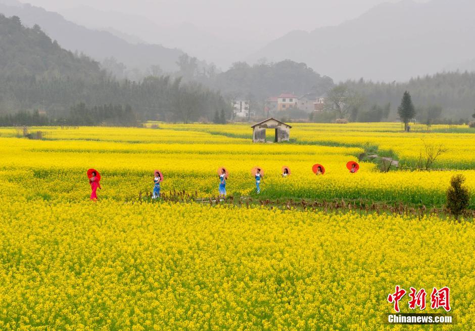 3月20日,江西省德興市??阪?zhèn)杜村婦女在田間花?!白咝恪?。當(dāng)日,江西德興市??阪?zhèn)杜村一批家庭婦女以千畝油菜花海為舞臺(tái),展示自己的才藝形象,希望宣傳家鄉(xiāng)的自然生態(tài)與人文歷史,擴(kuò)大旅游知名度和影響力。德興市??阪?zhèn)杜村交通便利,自然風(fēng)光優(yōu)美,村內(nèi)有歷史古跡和名木古樹(shù)。 胡敦煌 攝