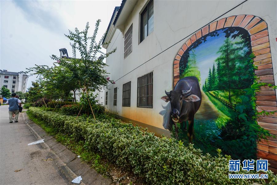 浙江省長(zhǎng)興縣北湯村的村舍墻壁上繪有3D畫(7月13日攝)。 7月初,由上海的藝術(shù)家團(tuán)隊(duì)繪制的多幅3D藝術(shù)畫亮相浙江省長(zhǎng)興縣林城鎮(zhèn)北湯村的村舍墻上。林城鎮(zhèn)北湯村是浙江省長(zhǎng)興縣新農(nóng)村建設(shè)示范點(diǎn),此次繪制3D藝術(shù)畫墻,是該村提升農(nóng)村品味、打造“詩(shī)畫北湯”的新舉措。 新華社記者徐昱攝