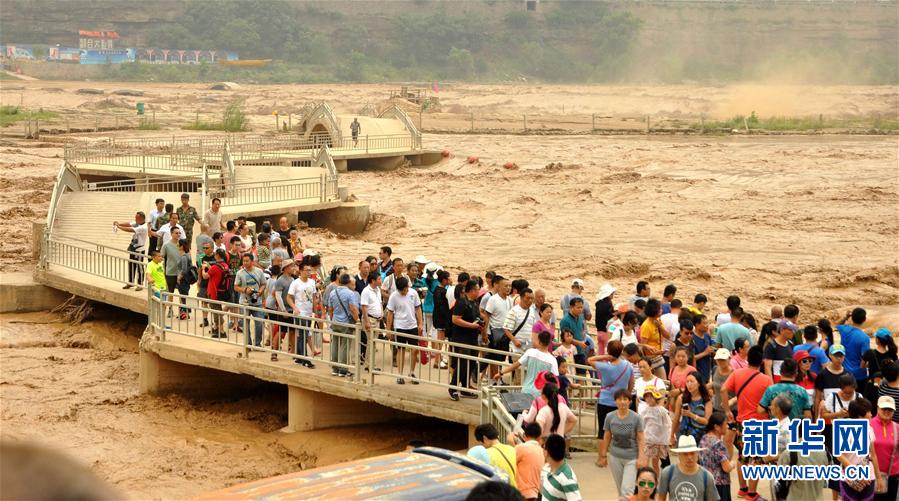近日,受上游地區(qū)強(qiáng)降雨天氣影響,位于山西吉縣和陜西宜川縣交界的黃河壺口瀑布水量大漲。目前,壺口景區(qū)已啟動(dòng)應(yīng)急預(yù)警,工作人員加強(qiáng)上游水情監(jiān)測(cè)并加大安全巡查力度,確保游客安全。新華社發(fā)(呂桂明 攝)