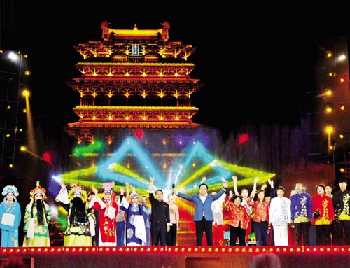 作為主場的運城市,用絳州鼓樂這一傳承千年的世界級非物質(zhì)文化遺產(chǎn)開場,電視連續(xù)劇《三國演義》關(guān)公扮演者陸樹銘威嚴(yán)亮相,以關(guān)公形象表達運城歷史傳統(tǒng)文化。