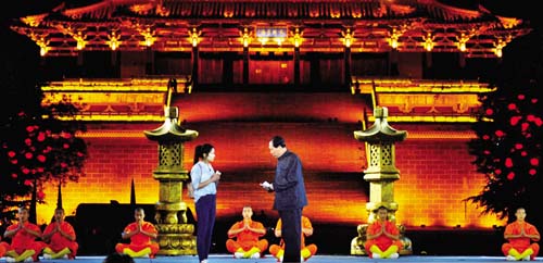 作為客場競演城市,我市節(jié)目精心策劃,抓住了城市的靈魂,以“心靈之舟”為主題思想,多角度展示了我市的文化旅游特色。在第一階段展示中,高清影視資料向觀眾推介了五臺山、雁門關(guān)等大美山河,吊足了觀眾的味口。4名原生態(tài)歌手和20名小朋友齊唱《美麗忻州心靈之舟》,營造出寧靜的開場氛圍。緊接著,毛澤東特型演員張瑞奇的出現(xiàn),將全場帶入第一個高潮,毛澤東與五臺山的歷史淵源點燃紅色激情,我市既展示出了名山秀水的妖嬈,又漂亮地打出了紅色旅游這張牌。宣講“忻州,我們的心靈之舟”這一主題的同時,更是將凈化心靈、激蕩心靈、洗滌心靈、愉悅心靈、陶冶心靈這5大內(nèi)容融入到節(jié)目中,完整地傳達“我們的忻州,是蕩滌人們心靈的忻州,是放飛人們夢想的忻州”這一主題思想。第一階段競演結(jié)束,鳳凰網(wǎng)點評嘉賓將支持票投給了忻州,因為忻州是個令她動心的地方。就連著名表演藝術(shù)家馬德華先生也被忻州的名山秀水所感染,他激情點評:“忻州令人魂牽夢繞。”圖為市委常委、常務(wù)副市長趙志堅傾情講述,撼動全場第二階段的展演,圍繞“產(chǎn)業(yè)轉(zhuǎn)型升級和旅游脫貧致富”,我市以建設(shè)蘆芽山為故事背景,蘆芽山掌門常洪睿講述了他致力打造智慧化旅游景區(qū)的故事。
