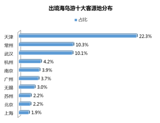出境海島游客源集中在一線、二線城市,國內海島游客源相對分散