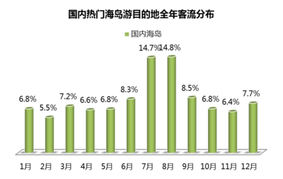 暑期是海島游出游旺季,國內海島游客流季節(jié)波動明顯