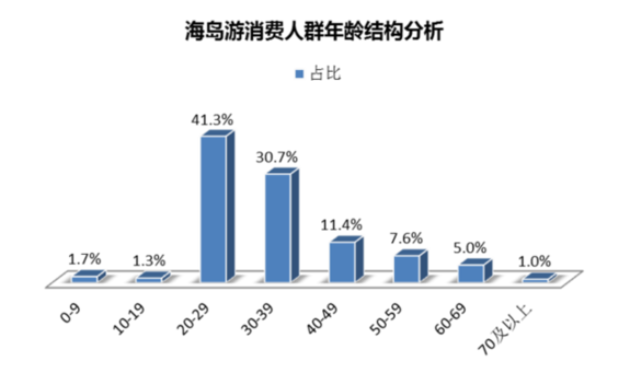 《報告》基于同程旅游最近一年的海島游消費用戶數(shù)據(jù)所做的分析顯示,20至39歲這一年齡層占比超過七成,是海島游的核心消費人群。另外,19歲以下人群占比3%,其中0-9歲占比1.7%,表明親子家庭已經成為海島游的重要客群。