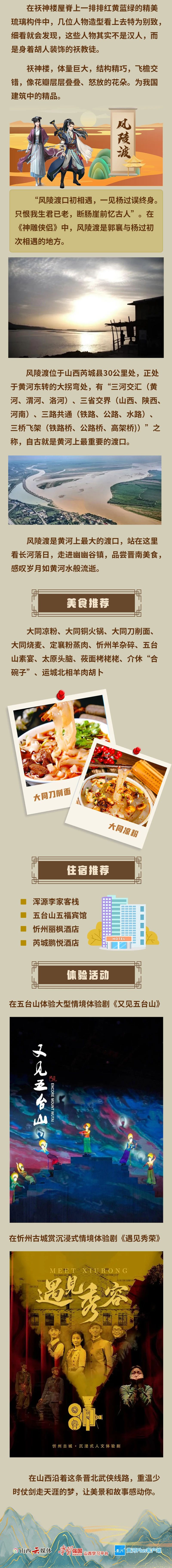 2023山西國風文化月已經(jīng)啟動,啟動儀式上發(fā)布的“金庸武俠線路”“詩詞名篇線路”“國家寶藏線路”三條國風文化線路備受關注??次鋫b、讀詩詞、賞國寶,國風山西到底怎么玩兒?三張長圖帶你走一遍!