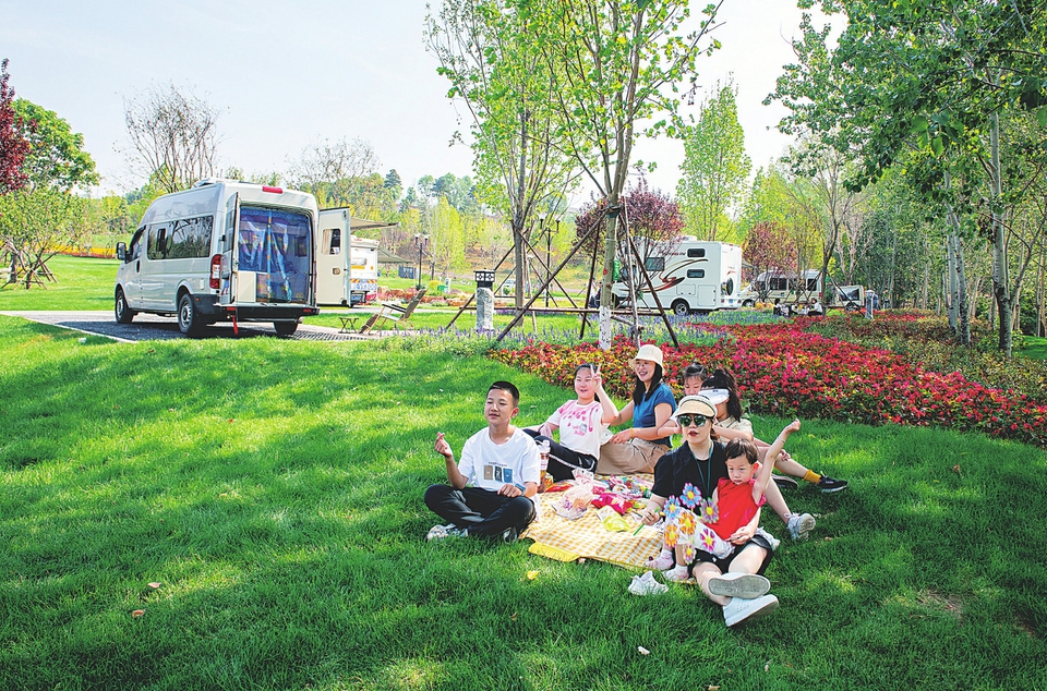 不僅民宿迎來眾多客流,各景區(qū)的露營活動(dòng)也吸引了大量避暑游客。在圣天湖景區(qū)的房車帳篷營地,游客可以在此開展房車露營、燒烤、自助特色餐飲、草坪親子、篝火晚會(huì)等多種活動(dòng)。